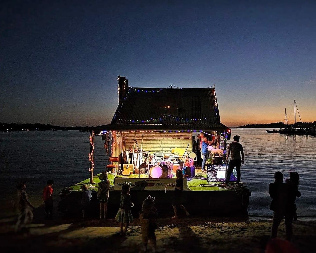 Over in Gippsland, there’s a music venue with a difference. It’s not a town hall or a band room at a pub. It’s a tin shed floating on a lake.